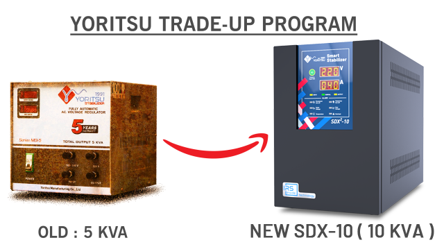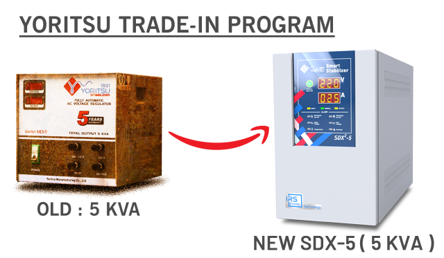Old Stabilizer (capacity) | New Stabilizer “Yoritsu” | Original Price (Rp) | “Merk Yoritsu” 15% Trade-In | Net Price (Rp) |