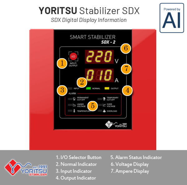 The AI-powered Stabilizer, Yoritsu SDX adalah upgrade dari Intelligent Response System (IRS) kami yang dilengkapi dengan AI teknologi untuk memberikan extra proteksi dan safety. Yoritsu SDX juga menawarkan kecerdasan dalam adaptasi management daya untuk perangkat rumah tangga, komersial dan industri.