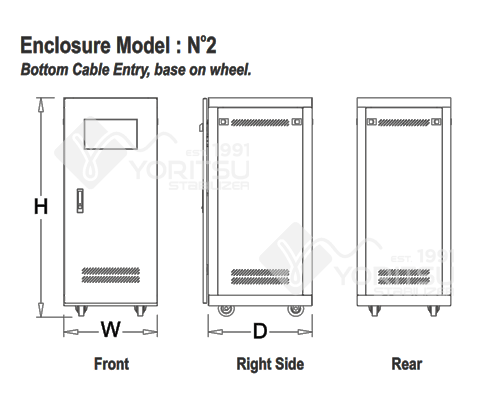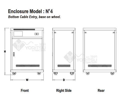 Khusus untuk Stabilizer Yoritsu 3 Phasa dilengkapi dengan Selector Switch untuk memantau output setiap phasa memberikan kemudahan saat prosedur maintenance dan pengawasan bagi staff teknik anda. Tampilan digital pada panel depan yang sangat terpadu dan fokus menunjukkan tegangan output dan alarm (tegangan output min / max dan tegangan listrik yang berlebihan). Angka pada nilai digital LED memberikan tampilan yang besar dan jelas sehingga memudahkan bagi anda atau staff teknik dalam memantau kinerja dari stabilizer listrik Yoritsu.