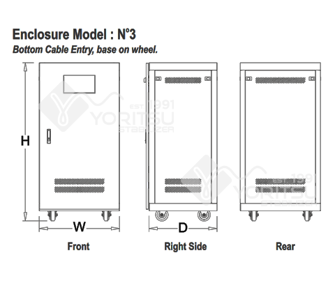 Stabilizer Listrik Yoritsu input 3 Phasa tersedia untuk rentang fluktuasi tegangan input dengan berbagai kapasitas yang berbeda mulai dari 6 KVA sampai dari 3000 KVA. Sehingga pilihan menjadi lebih luas dan beragam untuk melindungi investasi kelistrikan anda dari tegangan listrik yang tidak stabil.